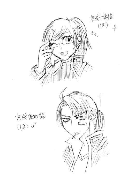 京成千葉線は千葉駅のアレと京成ローザにある映画館のイメージでちょっと腐女子チックな子。負けず嫌いなので、京成本線と一緒に総武線と張り合ってる。新京成線と甘いもの好き同盟を結んでいるっぽさげ。