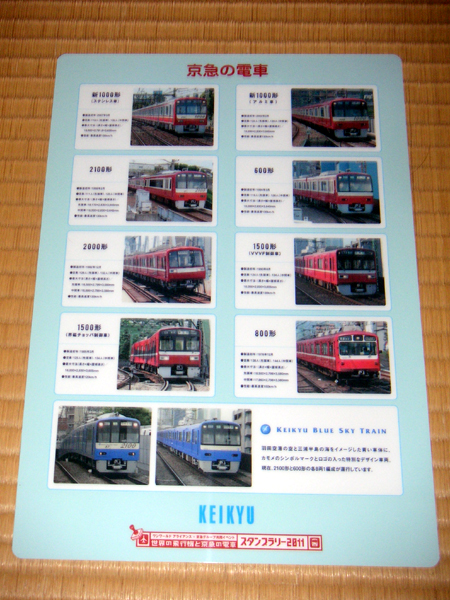 2日かけて回ったんですが、1日目は東京の交通100年博の帰りに京急鶴見以北全て、2日目は帰省のついでに横浜以南2ヶ所をクリアしました。記念品は上大岡の京急観光で。(いつも思うんですが、京急観光のマットレス本当売りだしてくれればいいのに……)