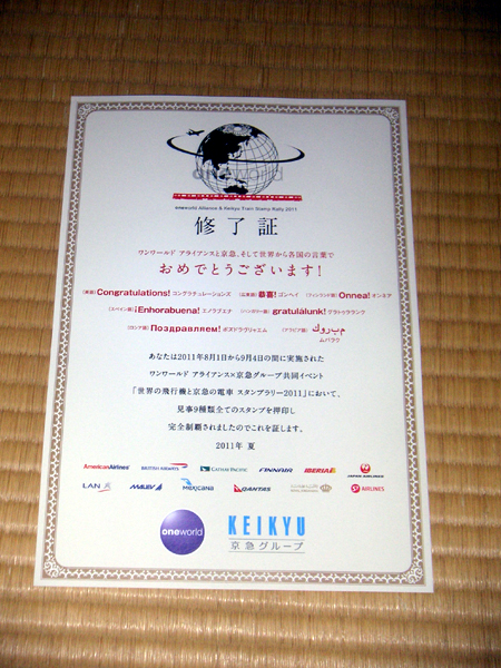 世界の飛行機と京急の電車スタンプラリー2011も回ってきました。
