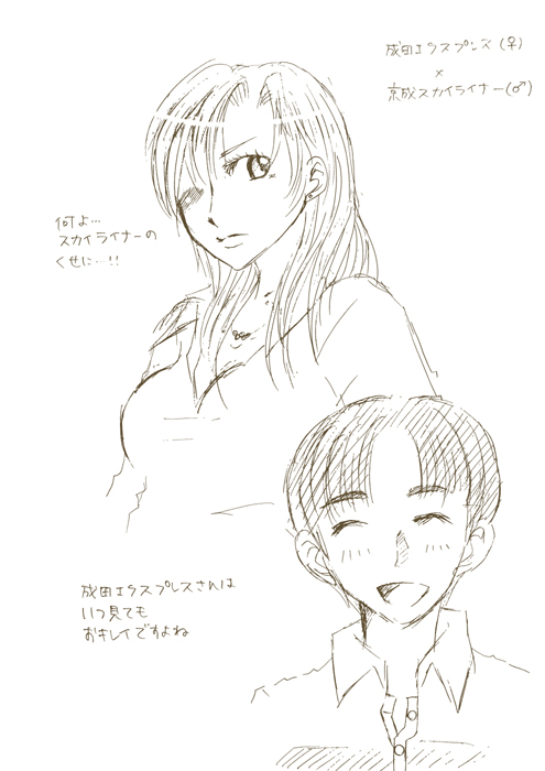 いつもお世話になっている知人が「成田エクスプレス×京成スカイライナーはどうだろう!」とステキな萌えをくださったので、思わず描いてみました。